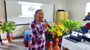 A técnica da Emdagro Dilma Maria também conduziu uma palestra sobre o “Valor Nutricional da Mandioca e Segurança Alimentar”. Em sua fala, ela destacou a importância da mandioca na alimentação das famílias do campo e da cidade, ressaltando seu valor energético, a presença de fibras, vitaminas e o potencial de combate à fome e à insegurança alimentar, sobretudo quando se utilizam variedades biofortificadas como a BRS 399, que contém betacaroteno.