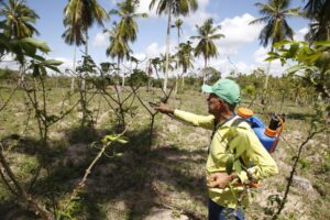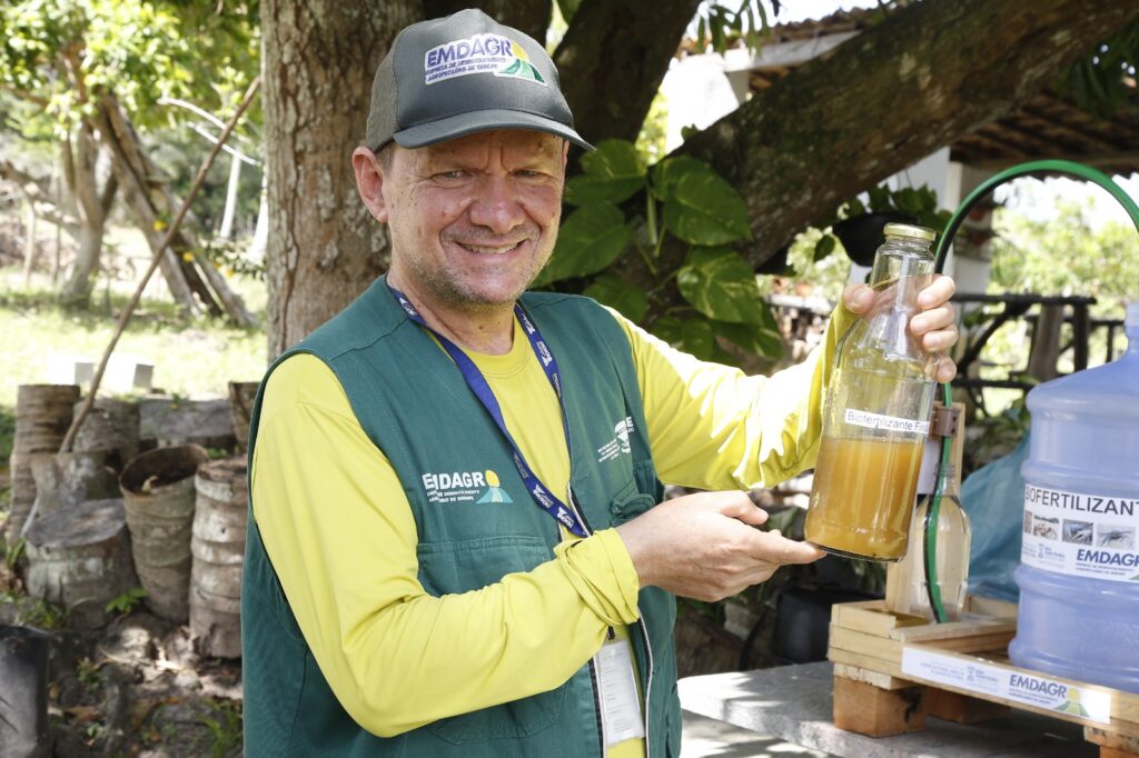 O engenheiro agrônomo Renato Figueiredo explicou que o diferencial do produto está na composição, rica em nutrientes, microrganismos benéficos e, principalmente, na presença de quitina, substância natural encontrada nos exoesqueletos de crustáceos. “Durante a fermentação, a quitina é convertida em quitosana, composto reconhecido por estimular os mecanismos naturais de defesa das plantas. Esse processo contribui para a prevenção de doenças, aumenta a resistência das culturas a pragas e favorece o desenvolvimento vegetativo das plantas. A quitosana também melhora a absorção de nutrientes pelas lavouras e potencializa a resposta imunológica das culturas, podendo reduzir a necessidade do uso de insumos químicos e tornar a produção mais sustentável e economicamente viável. Aplicado por pulverização, o biofertilizante foliar proporciona nutrição rápida às plantas e reforça a produtividade das lavouras. O tempo médio de preparo do produto varia entre 30 e 60 dias, e a expectativa é de que a iniciativa beneficie cerca de quatro mil produtores locais”, detalhou o engenheiro.